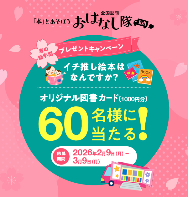 ②『本とあそぼう 全国訪問おはなし隊』のXアカウントが投稿した「#おはなし隊 #春の新学期」がついた投稿に、あなたのイチ推し絵本の作品名「#(作品名)」とその理由を明記し、ハッシュタグに「#おはなし隊 #春の新学期」を加えて引用ポストする。