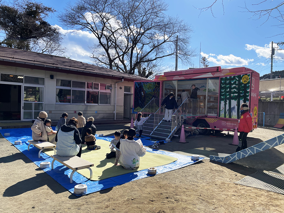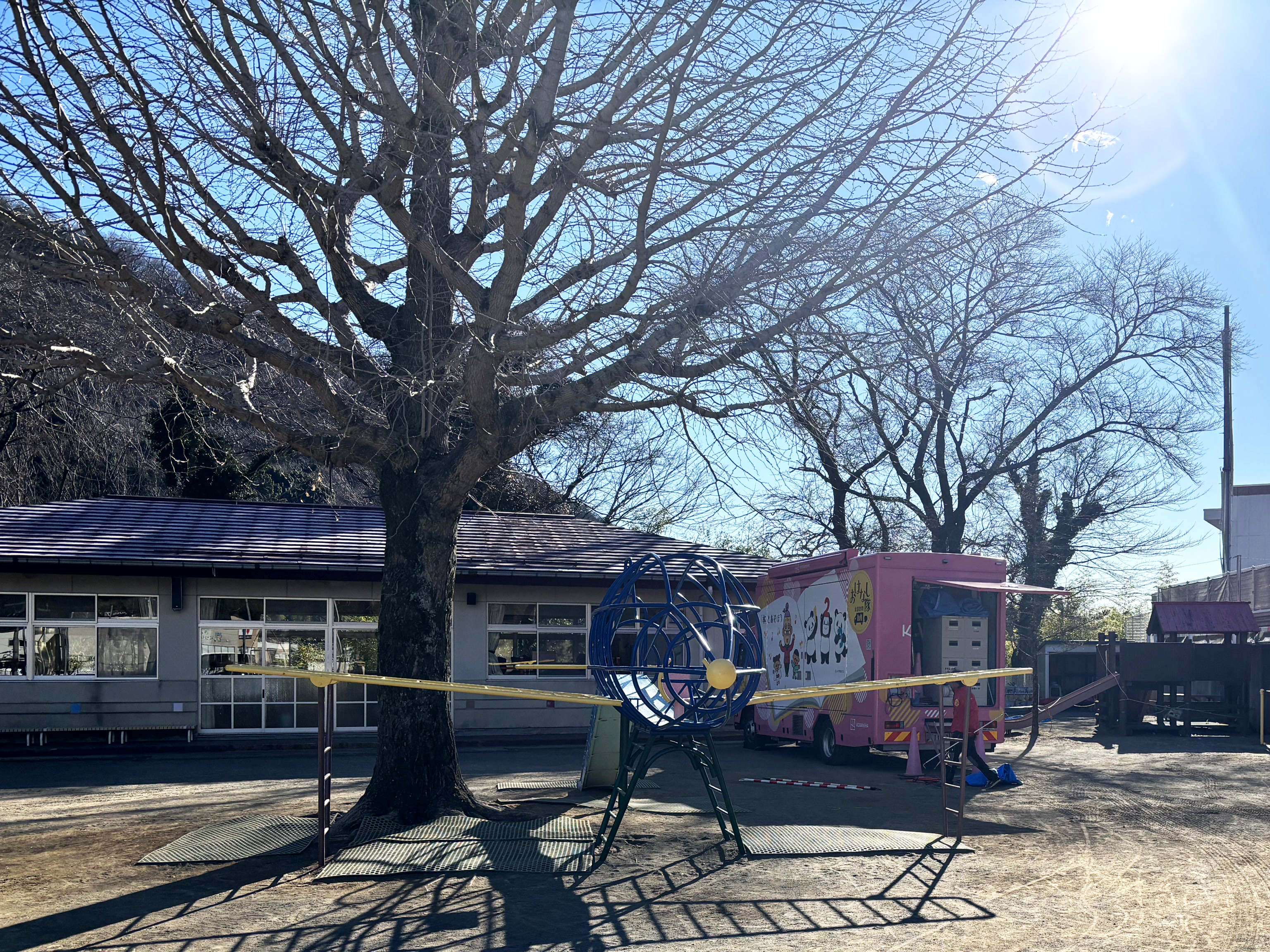 帰る頃には園庭の霜も溶け、ピンクのキャラバンカーの周りには、今日一日駆け回った子どもたちの足跡がたくさん刻まれていました。清川村の豊かな自然と、温かい笑顔に包まれた素敵な一日となりました。