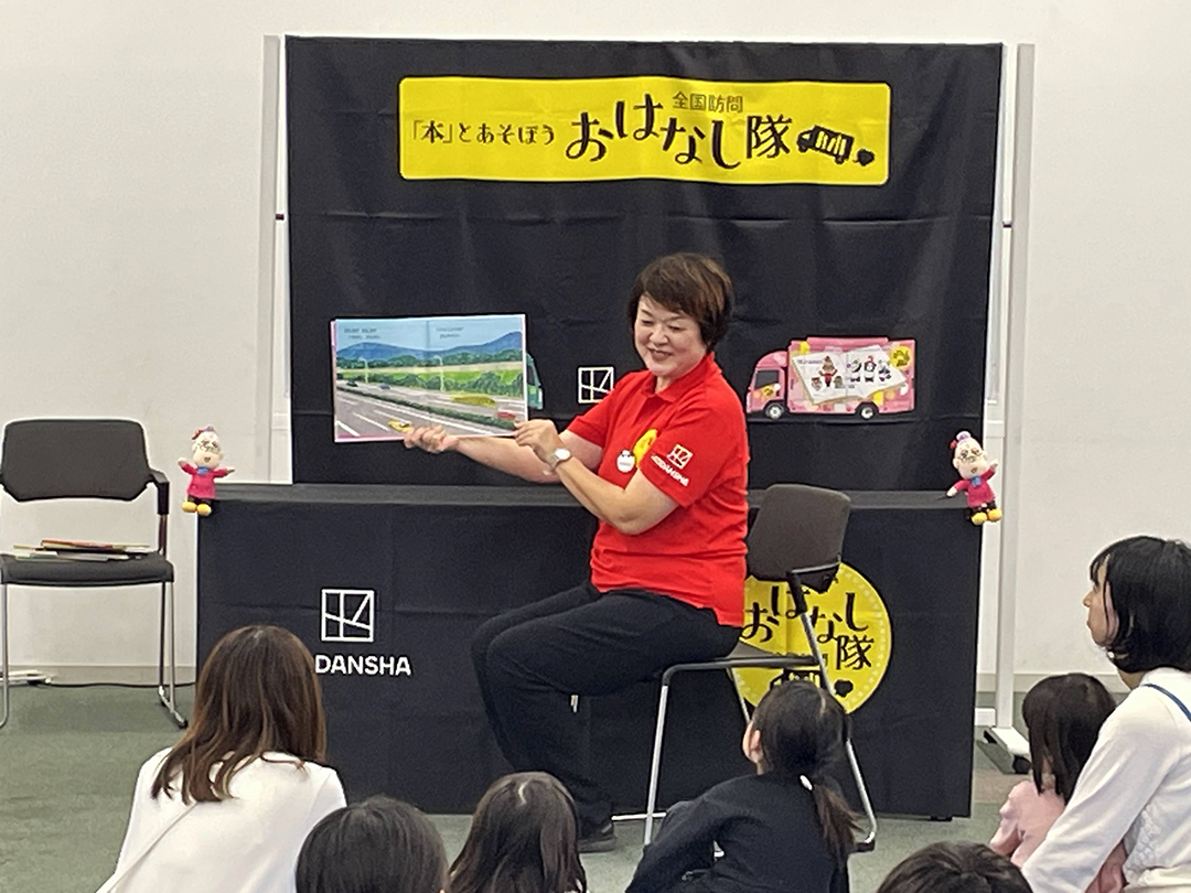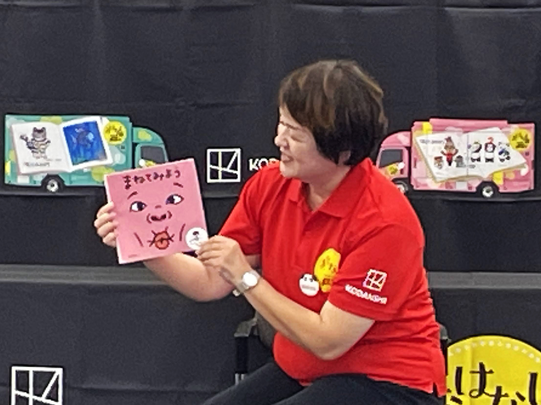 『どんぐりず』では、読み手の「ずこーっ!」の声に合わせて、多くの子どもたちが体を傾けて真似をしてくれ、会場が温かい笑い声に包まれました。